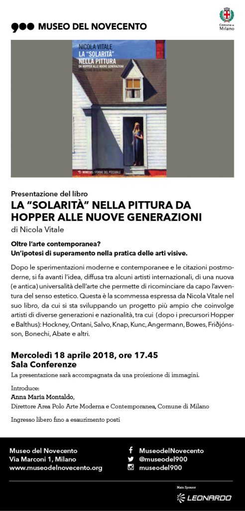 18 aprile ore 17.45, Museo del 900: Presentazione del libro La “solarità” nella pittura da Hopper alle nuove generazioni, di Nicola Vitale