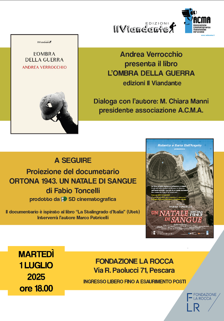 L’ACMA - Associazione Cinematografica Multimediale Abruzzese ha poi integrato l’incontro con la proiezione del DOCufilm “ORTONA 1943 - UN NATALE DI SANGUE” di Fabio Toncelli, produzione SD Cinematografica.