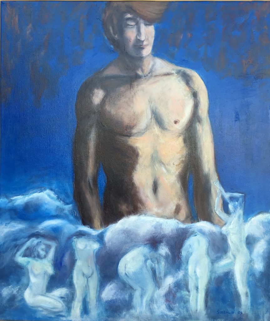 Dopo la mostra “Venere ferita” incentrata sul dramma della violenza sulle donne, Andrea Simoncini opera un'attenta indagine sui molteplici aspetti relazionali tra due entità opposte che giocoforza si attraggono. Il perenne confronto uomo-donna, maschile-femminile segna il percorso dell'umanità fin dall'inizio dei tempi, incontra i miti greci che di riflesso giungono fino a noi, investe il pensiero filosofico, la morale, la storia, la letteratura, l'arte, la quotidianità...