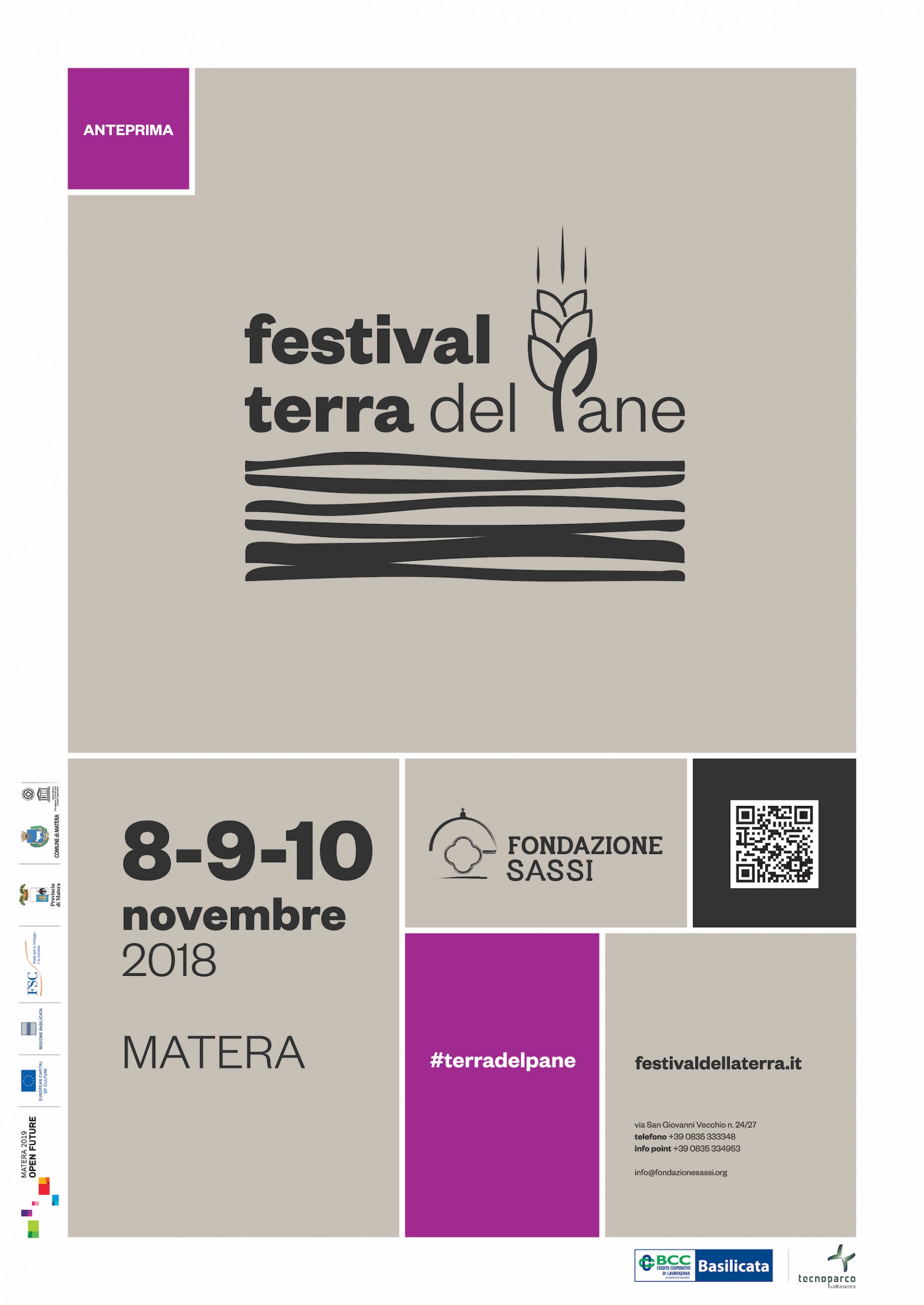 Tre giorni di festival, 30 ospiti nazionali e internazionali, in collaborazione con 7 associazioni culturali e il Consorzio Teatri Uniti di Basilicata. E’ la gustosa anteprima del Festival La Terra del pane, progetto per Matera 2019 - tema: Radici e Percorsi, organizzata e promossa da Fondazione Sassi, in coproduzione con la Fondazione Matera-Basilicata 2019. Un festival che avrà pieno svolgimento dal 27 settembre al 6 ottobre 2019.L'anteprima del Festival La Terra del pane è un progetto per Matera 2019, tema: Radici e Percorsi.
