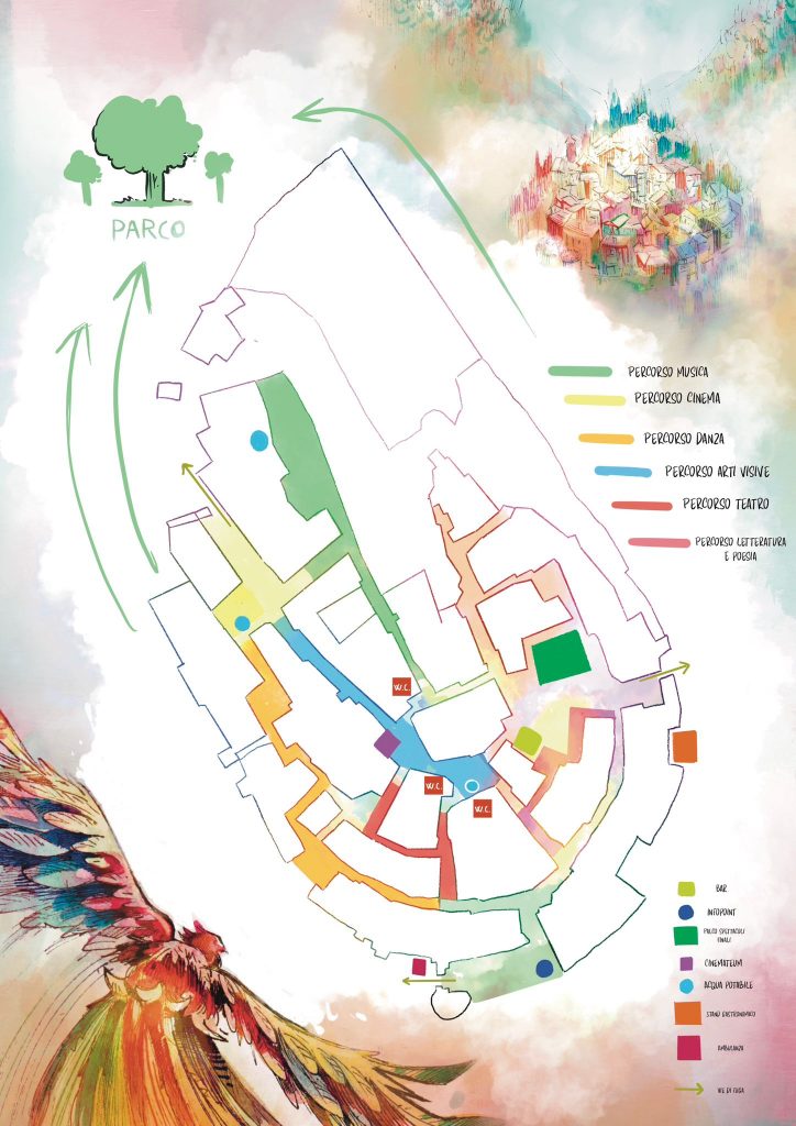 Come per ogni edizione, oltre ai percorsi dedicati ognuno ad un’arte, molteplici sono gli eventi speciali: spettacoli finali, aperitivi letterari, dj set post evento e gran finale la domenica tutti insieme nel vicinissimo e meraviglioso parco “Il Monte”di Montasola: