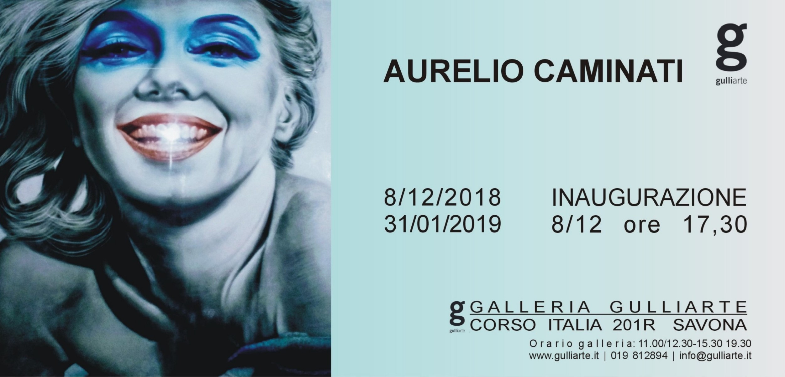 Sabato 8 dicembre ore 17.30 s'inaugura presso la Galleria GULLIarte in Corso Italia 201 r a Savona, la mostra dell'artista AURELIO CAMINATI.