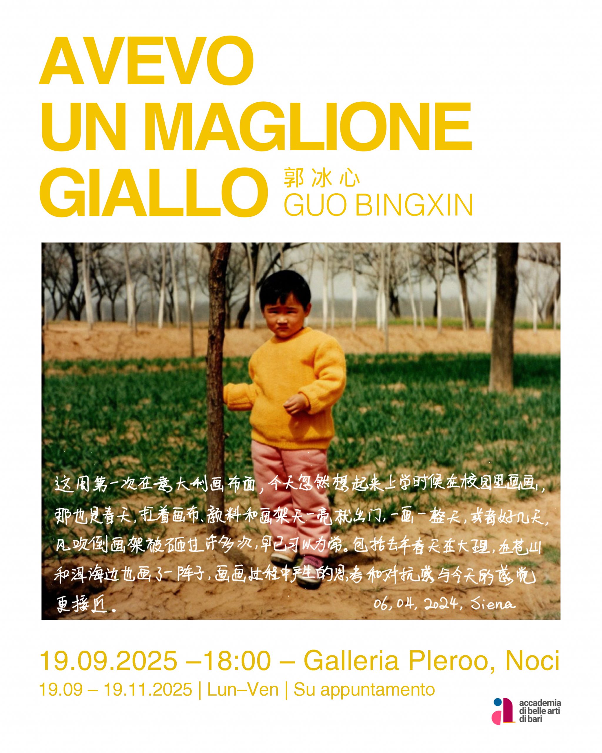 L’artista Guo Bingxin – nata in Cina e oggi residente in Italia – sviluppa una linea autobiografica che elude il racconto lineare. Le immagini non spiegano, affiorano, osservano, restano. Su carta e su tela compaiono presenze trattenute, figure e forme che oscillano tra memoria e percezione, come se ogni opera custodisse un tempo proprio, soggettivo, innescato da accadimenti minimi e imprevedibili.