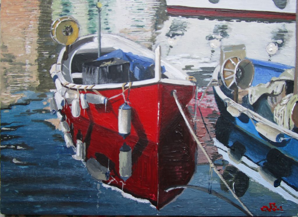 I suoi quadri nascono da un immenso, atavico, incontrollabile amore per il mare. Per questo la tecnica pittorica è semplice e manuale. La tecnologia distruggerebbe quella poesia e quei silenzi dai quali nascono le sue opere. Le marine, le barche, le pietre, le onde non hanno bisogno di nulla di artificiale per essere dipinte, occorre solo affidarsi all'istinto e al colore. E alla libertà.