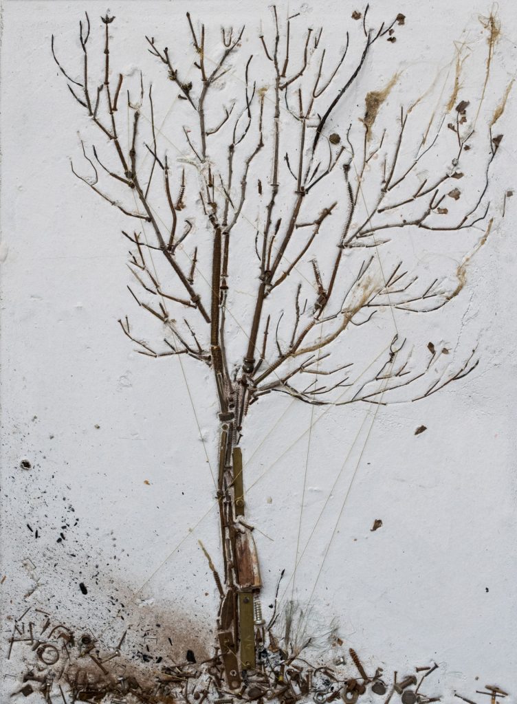Cemento, filo dorato, chiodi, cera d'api; elementi naturali e industriali dialogano in un percorso di sperimentazione dove le forme si fondono per divenire entità carnali e spirituali, creando effetti scenici di grande impatto, ma al tempo stesso velati di poesia.