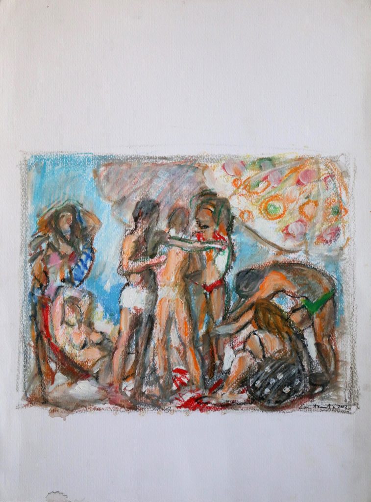 Di questa nuova stagione sarà protagonista Minori: qui, a partire dall’estate del 1968, l’artista prende in fitto una casa nella curva prospiciente la piazza principale del paese. Una casa, piccola quanto bastava per rispondere alle esigenze di un’estate – saranno poi tante e tante le vacanze, quasi cinquant’anni – a pochi metri dalla spiaggia e dal ritrovo serale con gli amici che, nel tempo, approderanno a Minori».