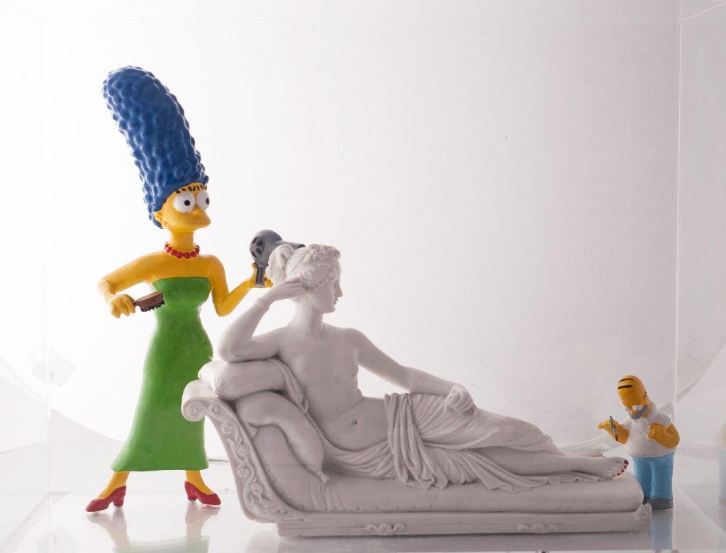 Classiche Contaminazioni è il titolo della terza mostra di G + G dedicata a gruppi statuari. Sono esposte 14 opere composte da statue classiche della tradizione greco romana, del rinascimento o del neoclassicismo dei secoli successivi, che interagiscono con gli allegri personaggi dei cartoni animati. Il connubio, la contaminazione delle icone pop, colorate e divertenti, con l’aristocrazia rarefatta delle bianche statue marmoree da vita ad una visione inedita e ironica.