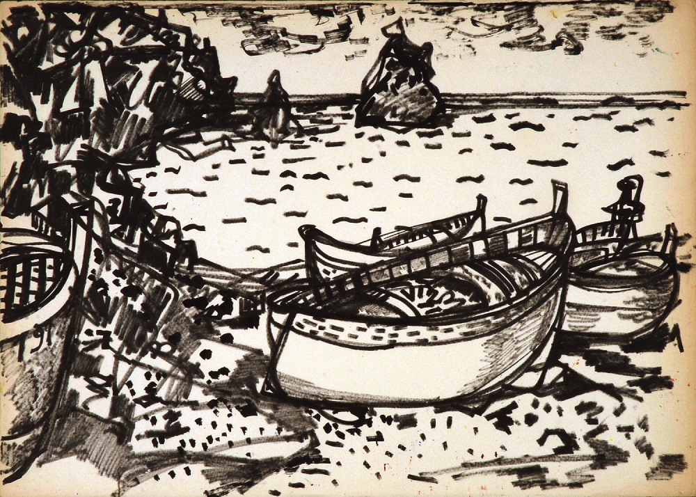 Il percorso espositivo raccoglie 15 opere tra cui 3 oli su tela, 3 tempere su carta e 9 disegni, accompagnate da un catalogo con testi di Angela Tecce e Andrea Busto. La mostra porta nelle sale della galleria un mare diverso da quello di Venezia: visioni delle coste italiane e francesi del Mediterraneo che dialogano, attraverso le finestre dello spazio espositivo, con il rio adiacente.