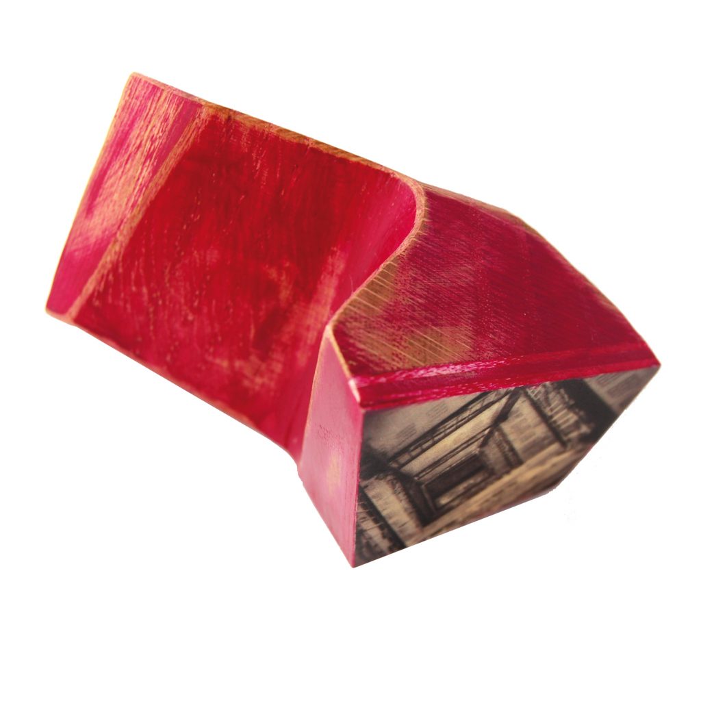 La collaborazione tra Fabrizio Bonvicini, maestro scultore di architetture indossabili e Marina Giannobi, fotografa di percezioni notturne, porta alla realizzazione di una serie di anelli in legno con inserti fotografici. Queste piccole sculture restituiscono uno sguardo sul mondo con geometrie architettoniche, colori che ne sottolineano i volumi e immagini in bianco e nero misteriose ed evocative. Forme come rocce islandesi, colori come templi indù, immagini indefinite come la notte, ci trasportano nei più remoti luoghi.