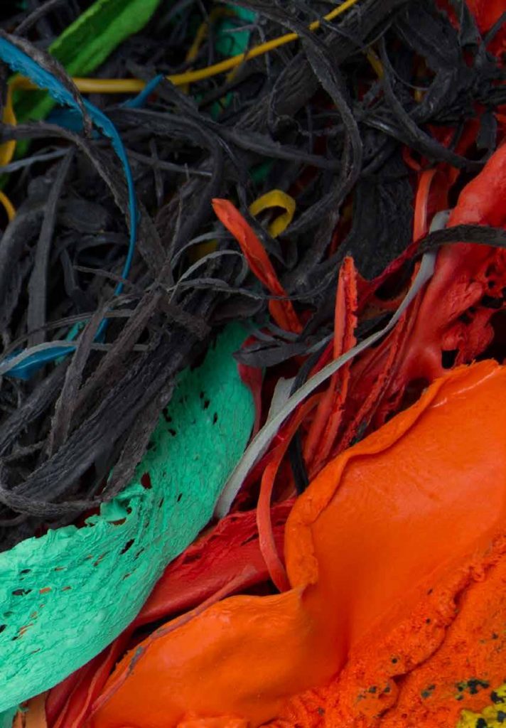 Vinicio Momoli, Padova 1942, è un pittore, scultore, designer che ha attraversato il mondo dell' arte degli ultimi cinquant'anni inserendosi da subito in una dimensione internazionale. Costante, nel suo percorso, è la rigorosa e riflessiva attenzione alla forma, al colore e alla materia. Spazia da lavori in ferro e legno, alla malta, al vetro, alla pietra delle sculture monumentali, per approdare infine al medium che probabilmente meglio si adatta alla sua personalità artistica: la gomma industriale.