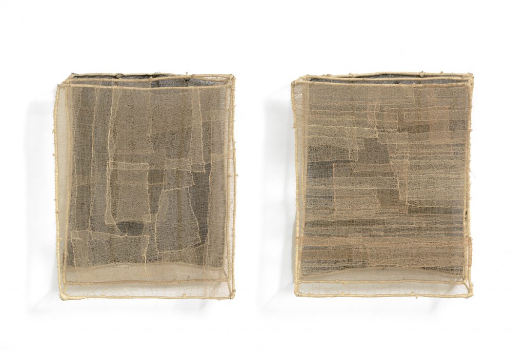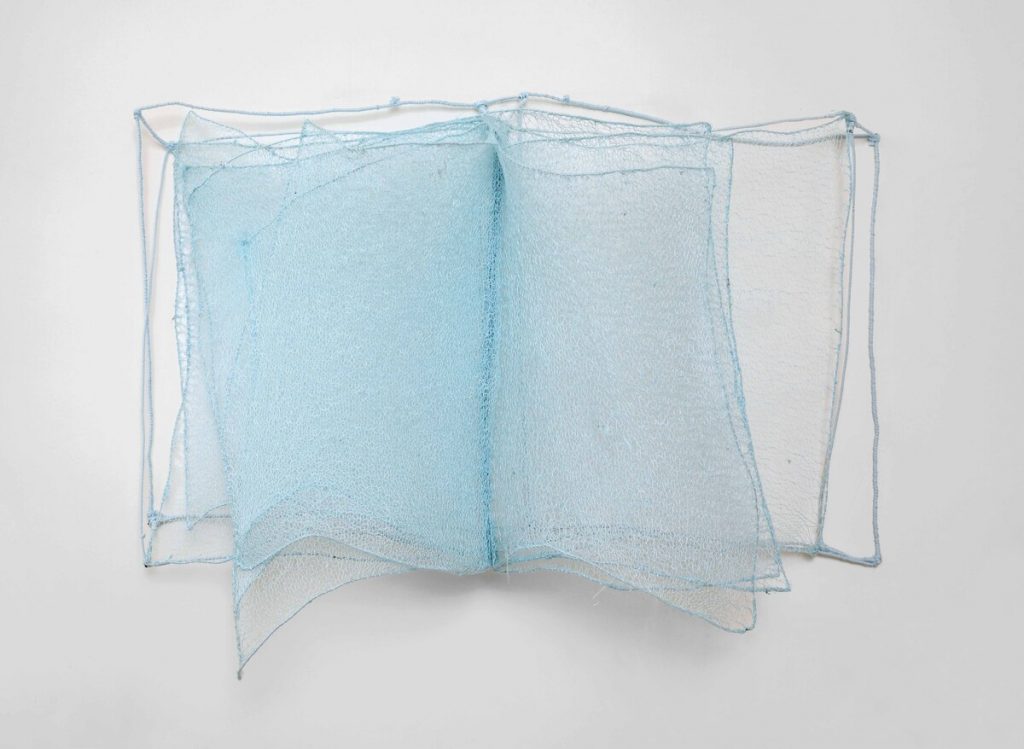 Dalle prime tele segnate da trame lineari, l’artista passa all’uso di materiali legati all’universo domestico e femminile – filo, pizzi, tessuti – fino all’invenzione del “filo solido”, composto da cotone e filo di ferro, che le consente di costruire forme nello spazio. Ne emergono cicli come Paesaggi, Mosaici e Trasparenze, dove strutture leggere, ombre e pieni dialogano con l’ambiente circostante. I Libri, ricorrenti e simbolici, rappresentano uno dei nuclei più intimi della sua produzione.