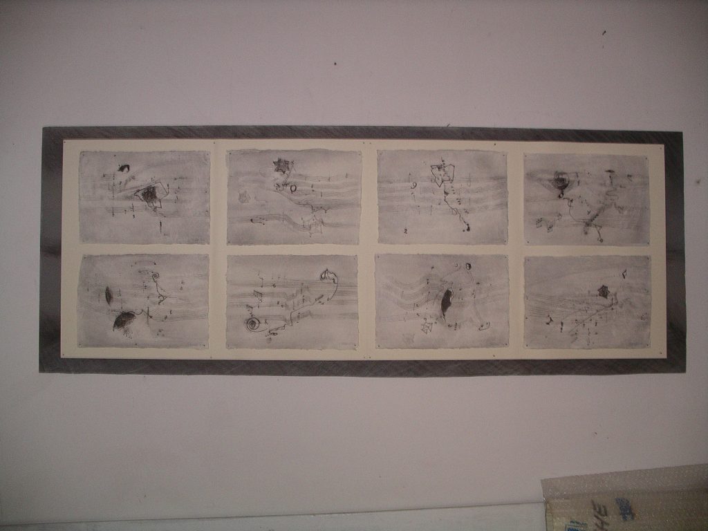 A Spoleto un’orchestra di… LIBRI, a Siena, a Reggio Emilia una parete di ARPE, a Milano e a Siena una parete di RIMESCOLARE IL TEMPO, a Milano un’intera BIBLIOTECA, e ancora una parete di METRONOMI, al Castello di Roccolo tutti i piccoli capolavori della BIANCA… dall’inizio ho visto moltiplicarsi queste sequenze… come la prima volta nel 1980 alla galleria “ticinese” con una sequenza di bacheche a terra. Non ho dimenticato i lunotti delle nozze di Psiche, i goniometri che come tutti gli strumenti di misura hanno sempre affascinato l’artista e tante tavolette legate a temi diversi, così oggi vedremo gli spartiti scivolare leggeri lungo le pareti.