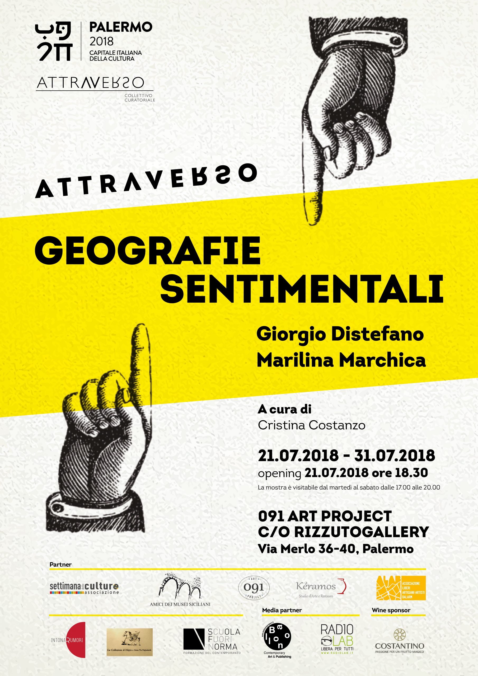 Si inaugura il prossimo 21 luglio, alle ore 18.30, negli spazi di 091 Art Project c/o RizzutoGallery a Palermo, Geografie sentimentali, la bipersonale di Giorgio Distefano e Marilina Marchica, a cura di Cristina Costanzo. La mostra è dedicata a due differenti ricerche riconducibili a un’affine geografia sentimentale, in riferimento a una riflessione del noto fotografo Luigi Ghirri che, nell’introduzione a Paesaggio italiano (1989), notava: “Questo lavoro sul paesaggio italiano vorrei che apparisse un po’ così, come questi disegni mutevoli, […] una cartografia imprecisa, senza punti cardinali, che riguarda più la percezione di un luogo che la sua catalogazione o descrizione, come una geografia sentimentale dove gli itinerari non sono segnati e precisi, ma ubbidiscono agli strani grovigli del vedere”.