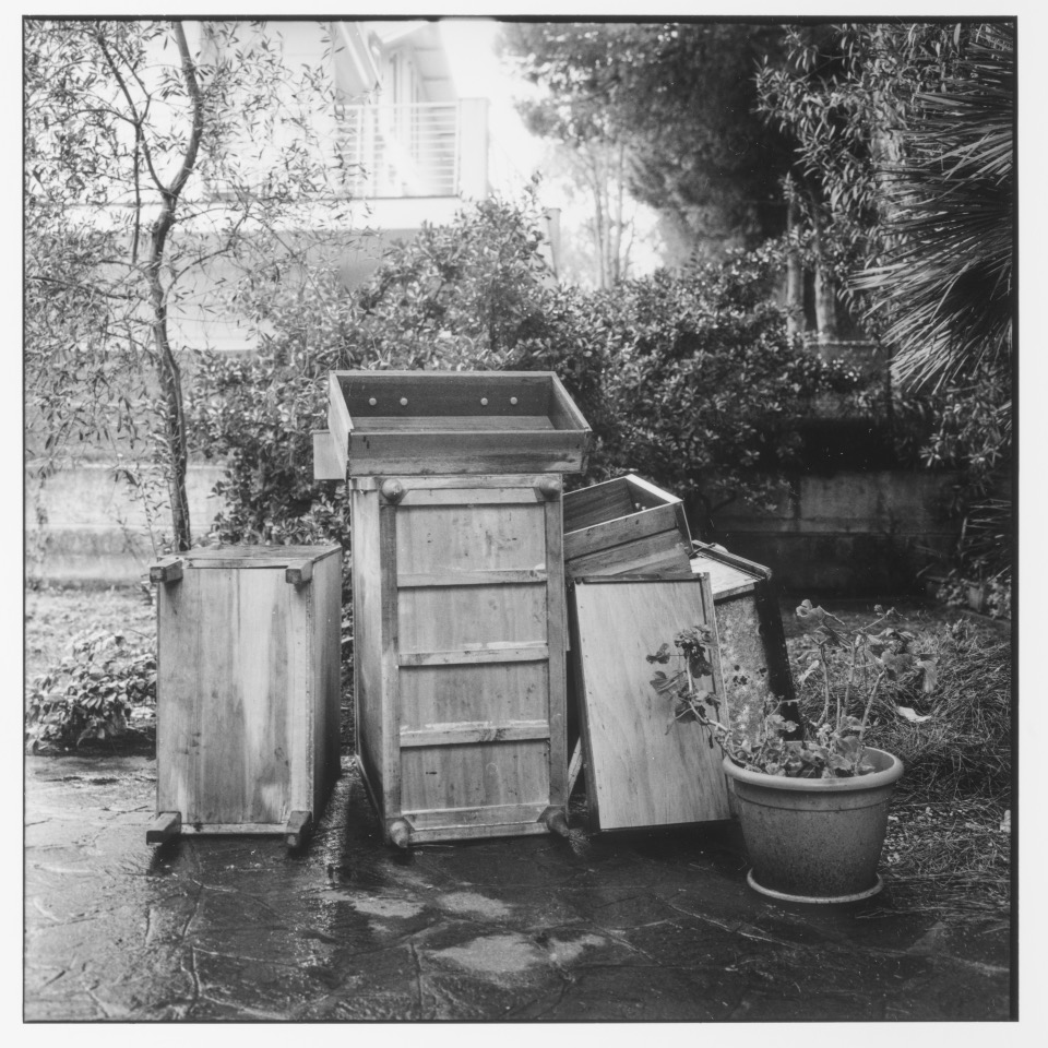 "Precedente e altrove" raccoglie una serie di fotografie in bianco e nero dedicate alla casa in cui l’artista è nata, un luogo a cui è tornata ciclicamente nel corso degli anni, come a riattraversare la propria origine attraverso la fotografia.