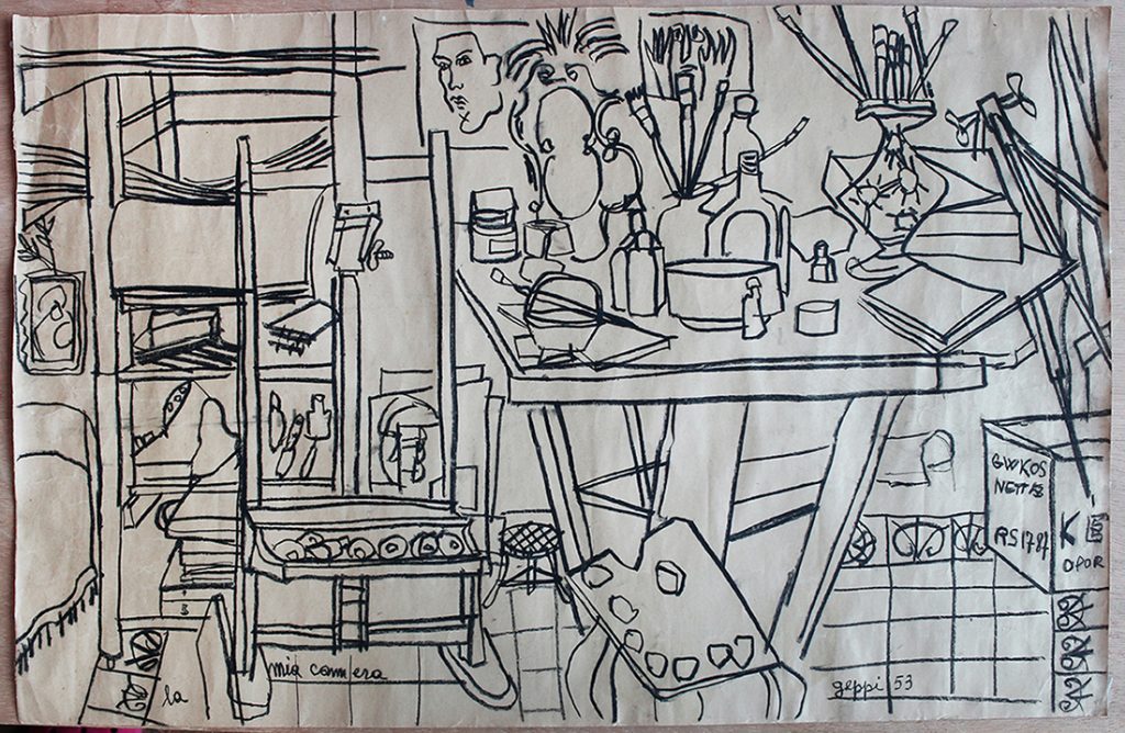 L’intento è quello di un gesto intimo che riveli il profondo senso della condizione umana che legava i due amici e che, nei quadri di Geppi, nelle nature morte, nei paesaggi al di là delle finestre, negli squarci di corti con panni appesi al vento, svela i termini di un racconto poetico.