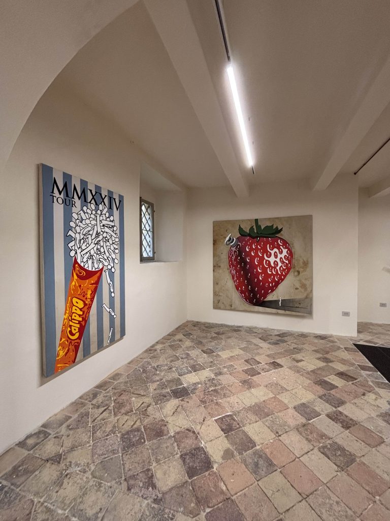 Morosini mette in scena i paradossi del presente: dall’eccesso di produzione e spreco alimentare alla dipendenza da diete e fitness, dalle contraddizioni sociali e geopolitiche agli sviluppi biotecnologici.