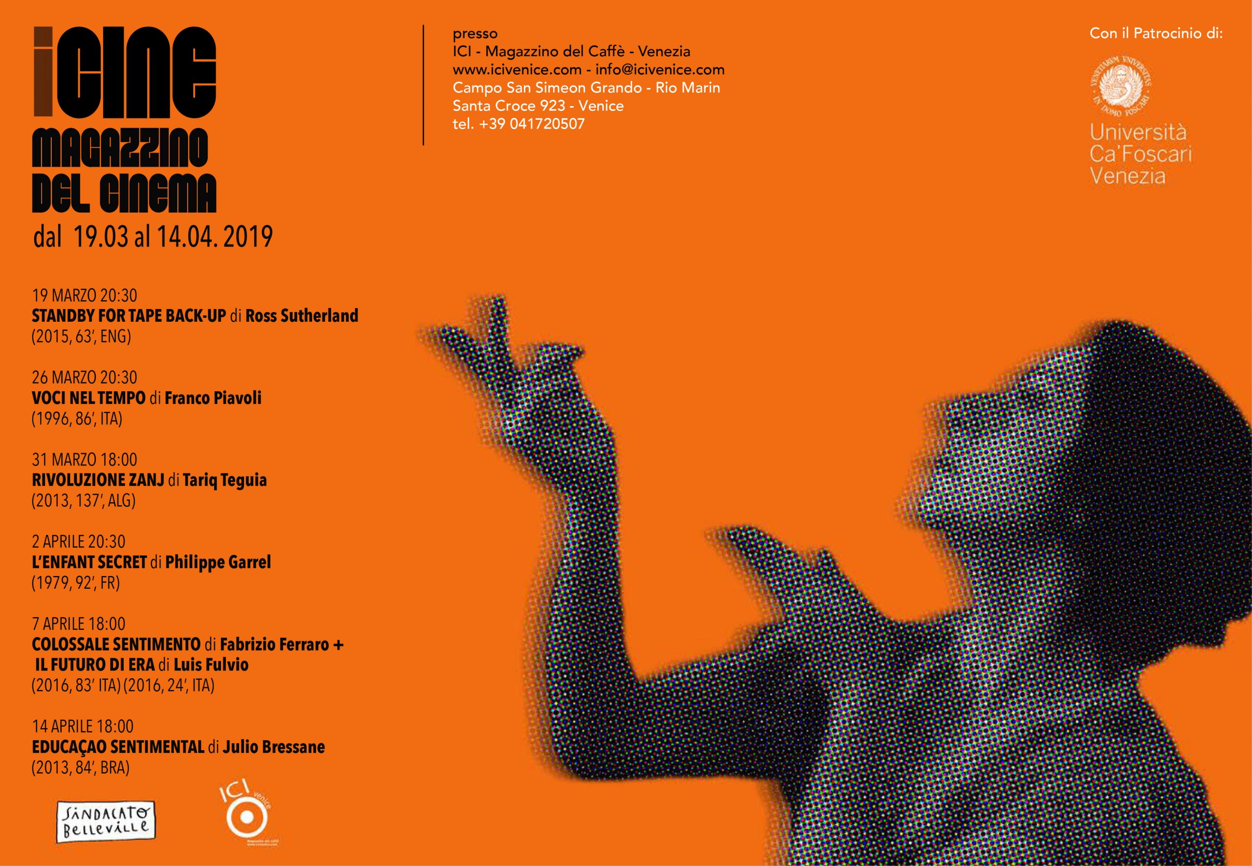 iCine - Magazzino del cinema è una rassegna di cinema d'autore della durata di un mese, dal 19 marzo 2019 al 14 aprile 2019 all'interno dello spazio espositivo di ICI - Magazzino del Caffè.