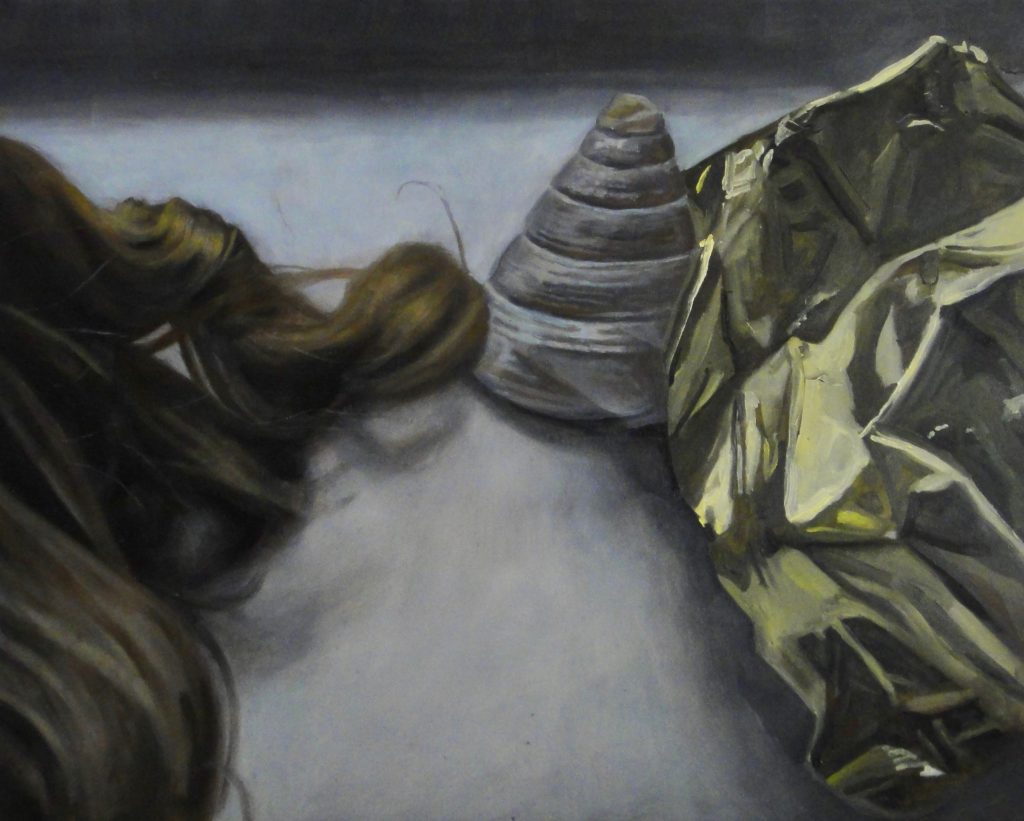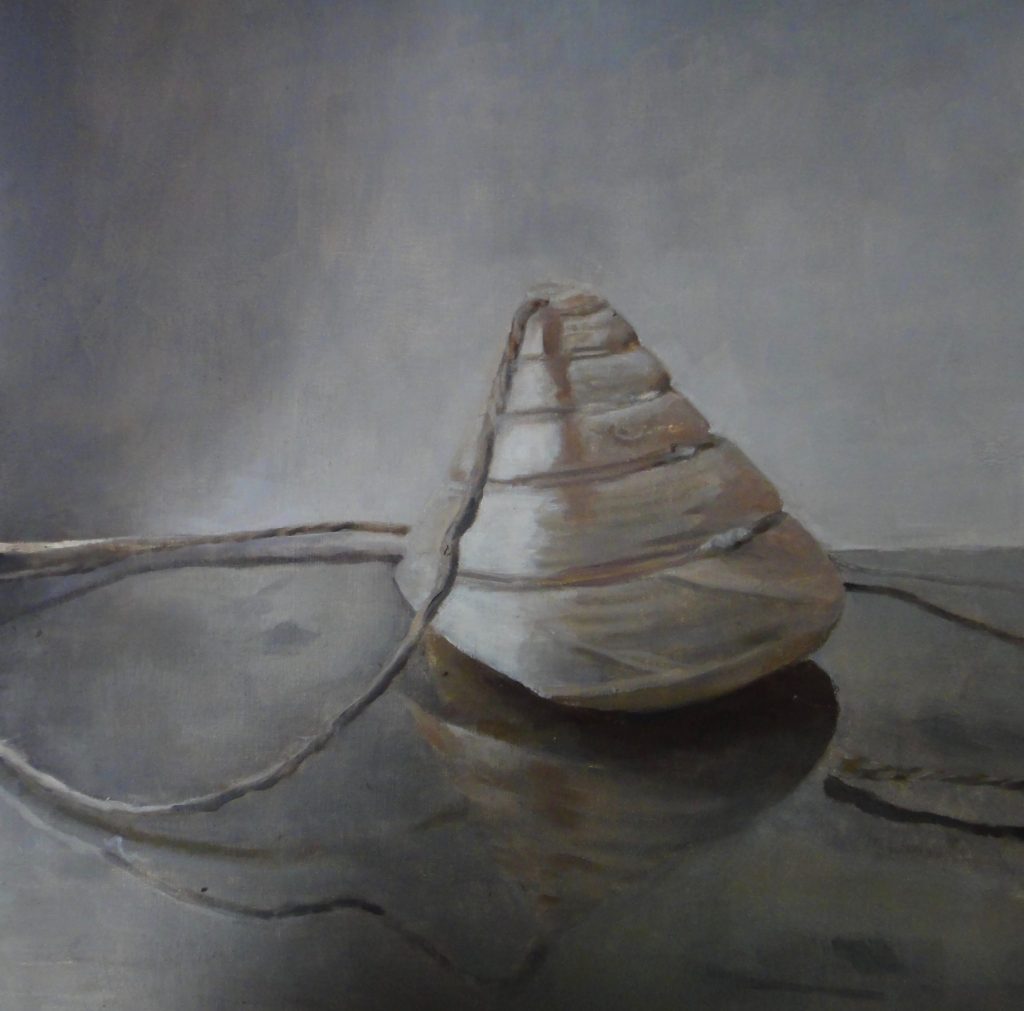 I lavori esposti derivano dalla osservazione dei modelli di crescita della vita organica, in particolare della regola aurea, dei frattali e della serie di fibonacci. La ricerca dell’artista inizia con la collezione di oggetti comuni che fanno riferimento ad una forma ricorrente, prime tra tutte la spirale. Questa è evidente in alcuni tipi di conchiglie, che l’artista pone al centro della sua esplorazione visiva. Ne nasce, una natura morta che non si presenta tanto come genere pittorico quanto più come paesaggio simbolico e mentale. I soggetti di questi lavori infatti sono immaginati come abitazioni in un luogo non specificato. Non se ne vede mai l’abitante, ma compaiono segnali della sua presenza (capelli, nastri, corde, bolle). Nell’opera "escaped", per esempio, una corda rimasta appesa alla sommità’ della conchiglia suggerisce una fuga dell’abitante da un abitacolo non più ospitale. Da un questo punto di vista, i gusci sono reinterpretati come contenitori dell’io, che sollevano allo spettatore questioni sulla identitas-alteritas, sul rapporto del sé con l’altro e con l’ambiente.