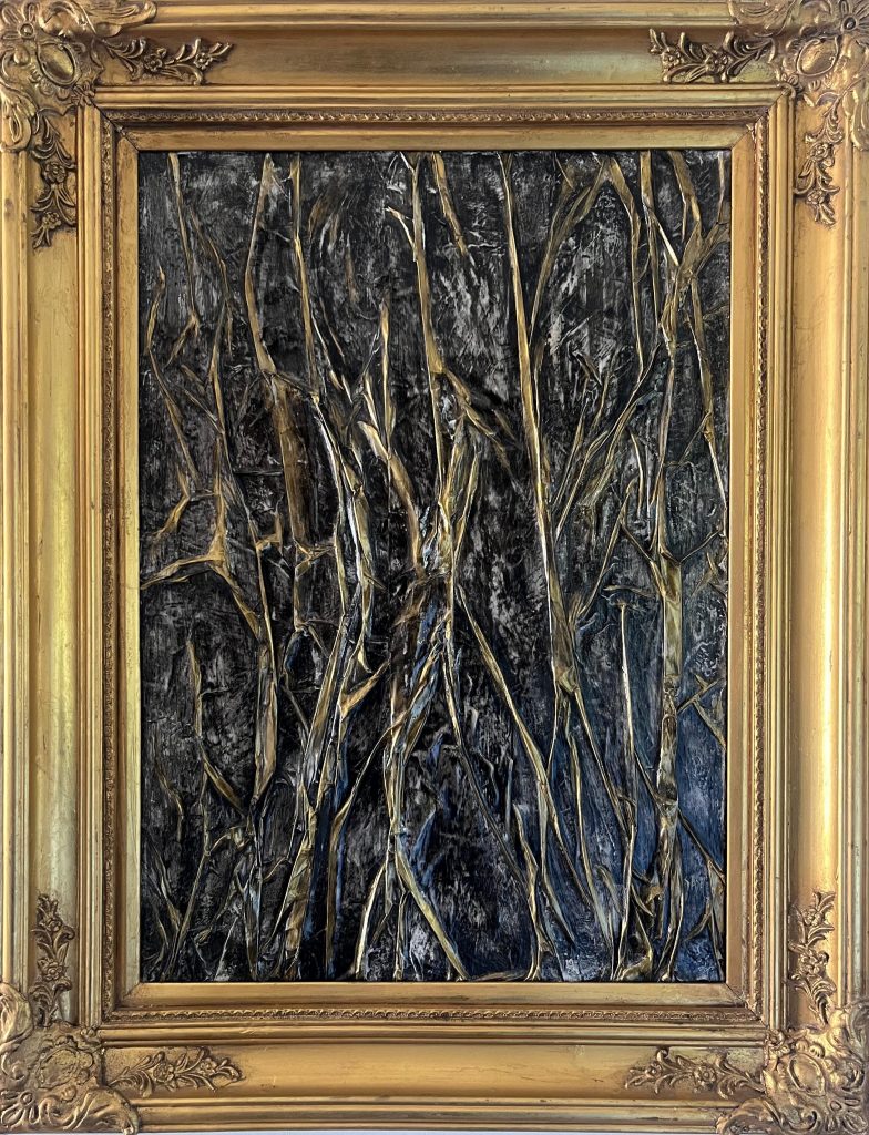 Le opere in mostra sono accomunate dal medesimo processo creativo. A partire dalla stesura di una base a tinta unita, Sabrina applica diversi strati di stucco con le mani fino a quando il quadro non comincia a prendere forma, e i colori vengono da sé, attraverso un processo di addizione, sottrazione, diluizione con acqua. Una volta terminata, dall’ opera emerge ciò che già conteneva dentro di sé, e il titolo è scelto in base allo stato d'animo provato in quel determinato momento. I colori sono abbondanti e pastosi, spesso scuri, prediletti per la loro capacità di restituire una vasta gamma di sfumature.