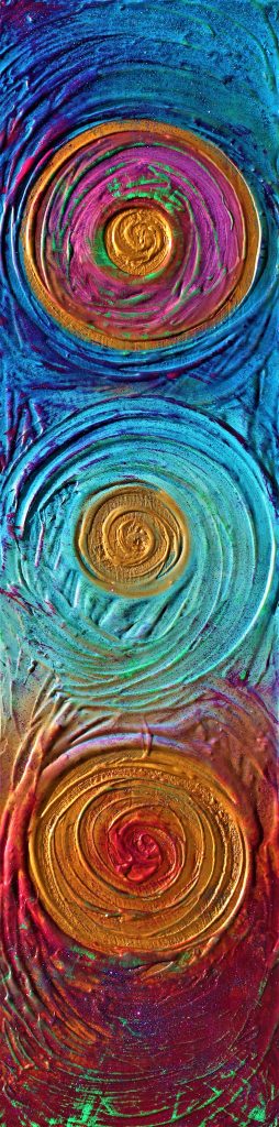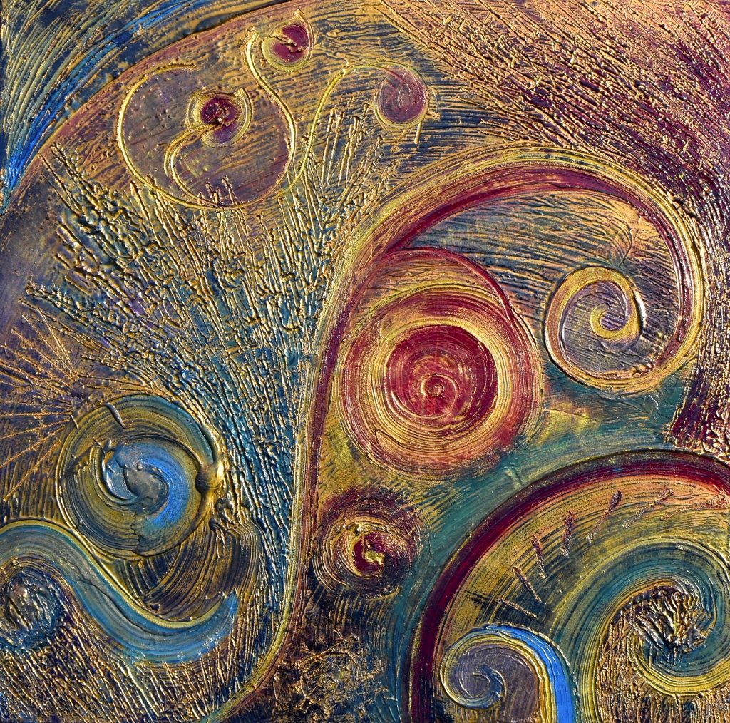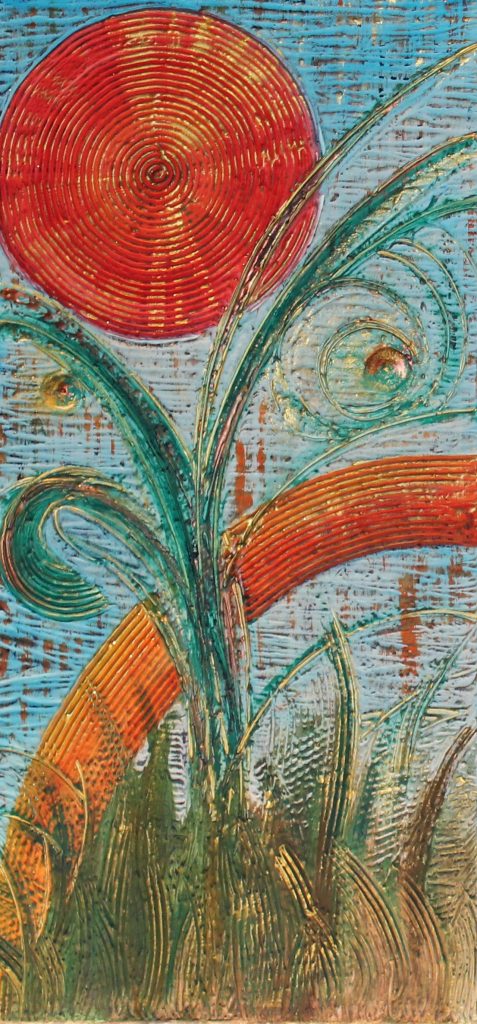 Ecco quindi l’oro che accende e impreziosisce i suoi lavori; metafora stessa dell’ispirazione e della creazione artistica, questo raffinato colore entra nei dipinti di Sophia e li illumina, li arricchisce, diventa sostanza cromatica che invade ampie superfici o sottolinea particolari e dettagli. Queste sue opere, che hanno stabilito un legame inscindibile con la luce, esprimono un messaggio di speranza, sono una concreta testimonianza di amore per la vita.