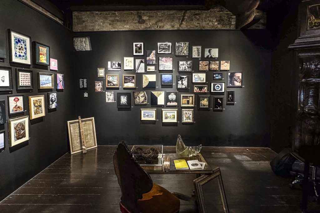 La mostra è concepita come una stanza-santuario, una camera segreta che racchiude l’anima e l’universo immaginario del collezionista. Al suo interno, piccole opere e oggetti d’arte sono disposti in modo apparentemente casuale, saturando lo sguardo e dando vita a una narrazione aperta e frammentaria. Il visitatore è così chiamato a immergersi in questa atmosfera sospesa, lasciandosi guidare dal caos e dal dettaglio per scoprire nuove connessioni e significati.