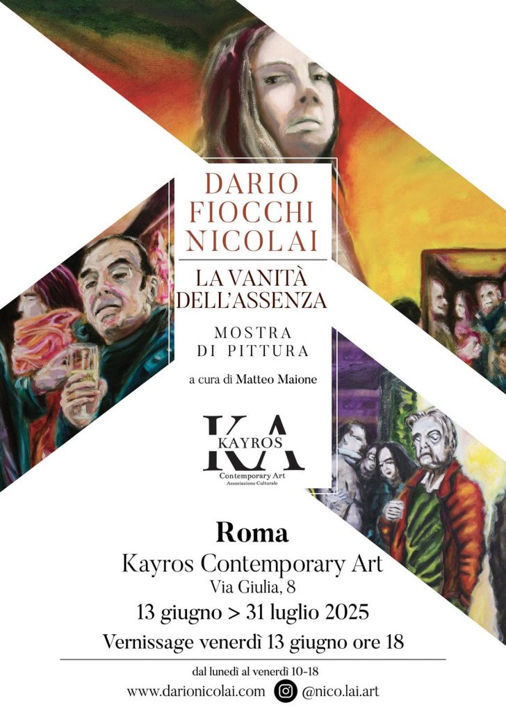 Una mostra di pittura da non perdere, di prossimo varo a Roma, ha per titolo “La vanità dell’Assenza” di Dario Fiocchi Nicolai, a cura di Matteo Maione. Sarà ospitata da Kayros Contemporary Art a via Giulia nr. 8, con il vernissage previsto alle ore 18.00 di venerdì 13 giugno. L’esposizione, ad ingresso libero, sarà visitabile fino al 31 luglio seguendo gli orari di apertura della galleria ospitante. Si tratta di una exhibition pittorica davvero singolare, che invita a una profonda e chiara riflessione sulla vanità dell'apparire e sull'inconsistenza di tale manifestazione, che vive di contraddizione propria.