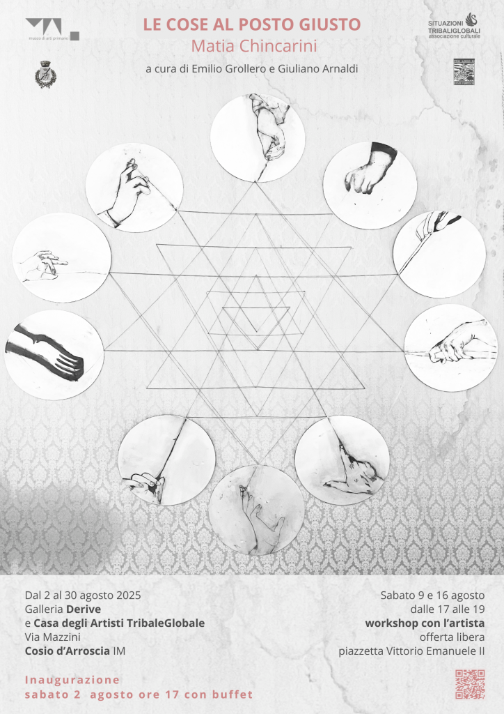 Galleria Derive e Casa degli Artisti TribaleGlobale presentano Matia Chincarini – LE COSE AL POSTO GIUSTO, mostra personale di un artista che attinge al gioco come metafora di un’azione catartica votata all’uscita dal razionale, dall’ordinario. A cura di Emilio Grollero e Giuliano Arnaldi.