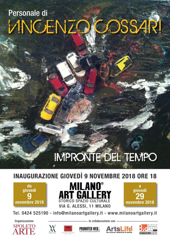 Le impronte del tempo, così si chiama la prossima attesissima mostra dell’artista Vincenzo Cossari. Alla Milano Art Gallery, celebre sede nel cuore della metropoli settentrionale, dal 9 al 29 novembre avrà luogo la personale del talentuoso Maestro, organizzata dal manager di personaggi noti Salvo Nugnes, direttore di Milano Art Gallery. Il vernissage è previsto per le 18 di venerdì 9 novembre in via Alessi 11.