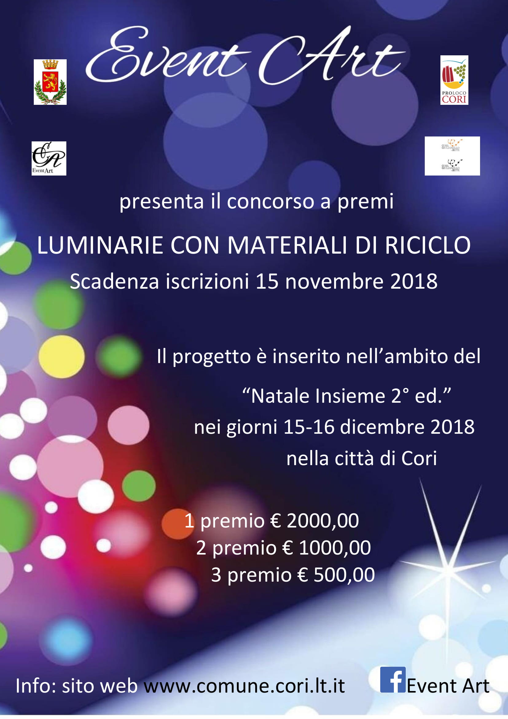 L'Associazione Event Art in collaborazione con l'amministrazione comunale della città di Cori, promuove il bando di partecipazione Premio d'Arte sul tema "Luminarie con materiali di riciclo"
