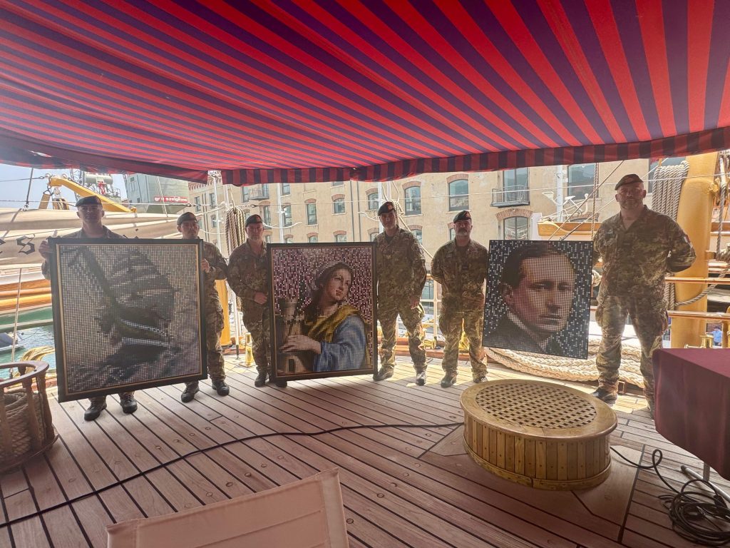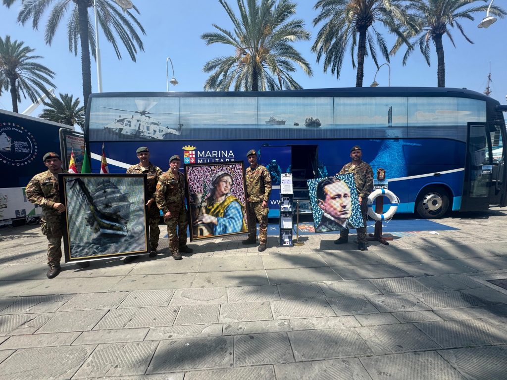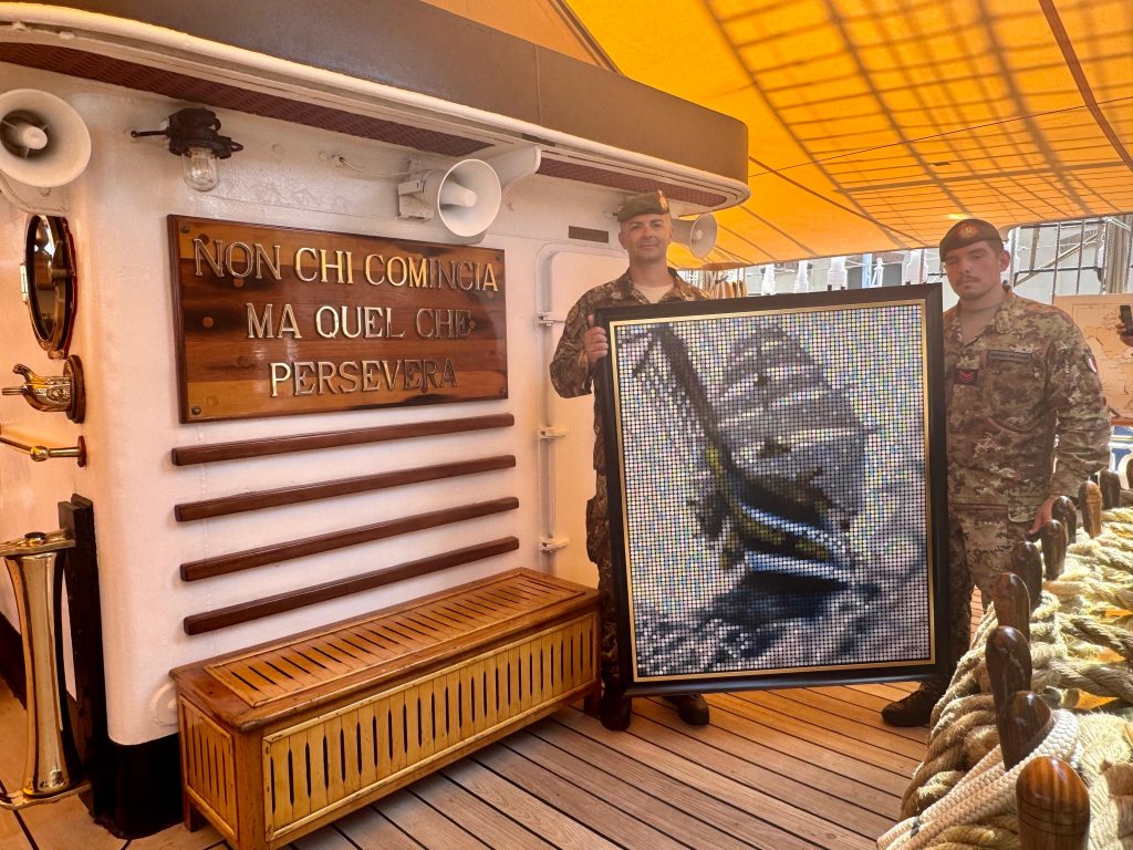 In occasione della Giornata della Marina Militare e della chiusura del Tour Mondiale della Nave Vespucci, MaMà Dots ha esposto a Genova la mostra “Perseverance”. Due opere originali, trasportate a bordo con scorta della Brigata Marina San Marco, entrano nel patrimonio artistico della Marina. L’evento, promosso da Rai Cultura e Comitato Marconi 150, ha visto la partecipazione di autorità culturali e militari, celebrando il Pop Pointillism come linguaggio artistico contemporaneo oltre l’intelligenza artificiale.