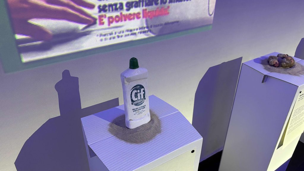 Gli oggetti musealizzati sono quelli che possono raccontare una storia, i rifiuti che hanno mantenuto una fisionomia riconoscibile, una data impressa sulla confezione, un marchio, un vecchio prezzo in lire, la veste grafica riconducibile a un determinato periodo storico. Tra i reperti più comuni ci sono flaconi di creme e saponi, confezioni di caramelle e gelati, contenitori degli Anni Sessanta che spesso recano ancora impressi gli slogan che invitavano all’acquisto del prodotto.