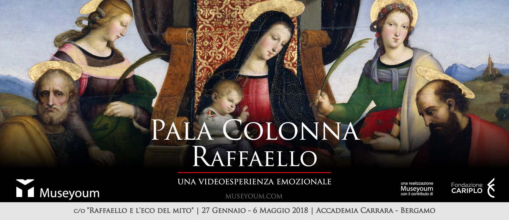 Museyoum presenta una coinvolgente esperienza visuale dedicata alla Pala Colonna di Raffaello nell'ambito della mostra "Raffaello e l'eco del mito", in programma all'Accademia Carrara di Bergamo dal 27 Gennaio al 06 Maggio 2018.