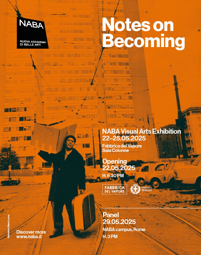 “Notes on Becoming”, nata da un’idea di Marco Scotini, NABA Visual Arts Department Head con Andris Brinkmanis, Course Leader del Triennio in Pittura e Arti Visive del campus di Milano dell’Accademia, e Caterina Iaquinta, Course Leader del Triennio e del Biennio Specialistico dell’Area Visual Arts di NABA a Roma, mette in scena una selezione di progetti degli studenti del Triennio in Pittura e Arti Visive e del Biennio Specialistico in Arti Visive e Studi Curatoriali dei campus di Milano e Roma, coinvolti in qualità di artisti e curatori. La mostra nasce con l’intento di indagare la fitta rete di relazioni tra memoria, corpo e migrazione. Al centro del progetto, il concetto di archivio — custode della memoria — viene reinterpretato secondo la visione del filosofo francese Michel Foucault come spazio di trasformazione: un luogo dove la memoria non è statica, ma si modella attraverso il movimento del corpo nello spazio.