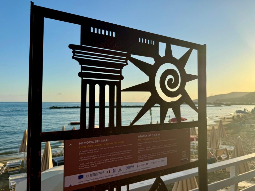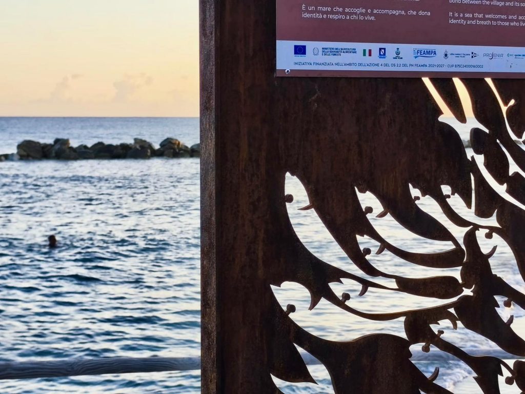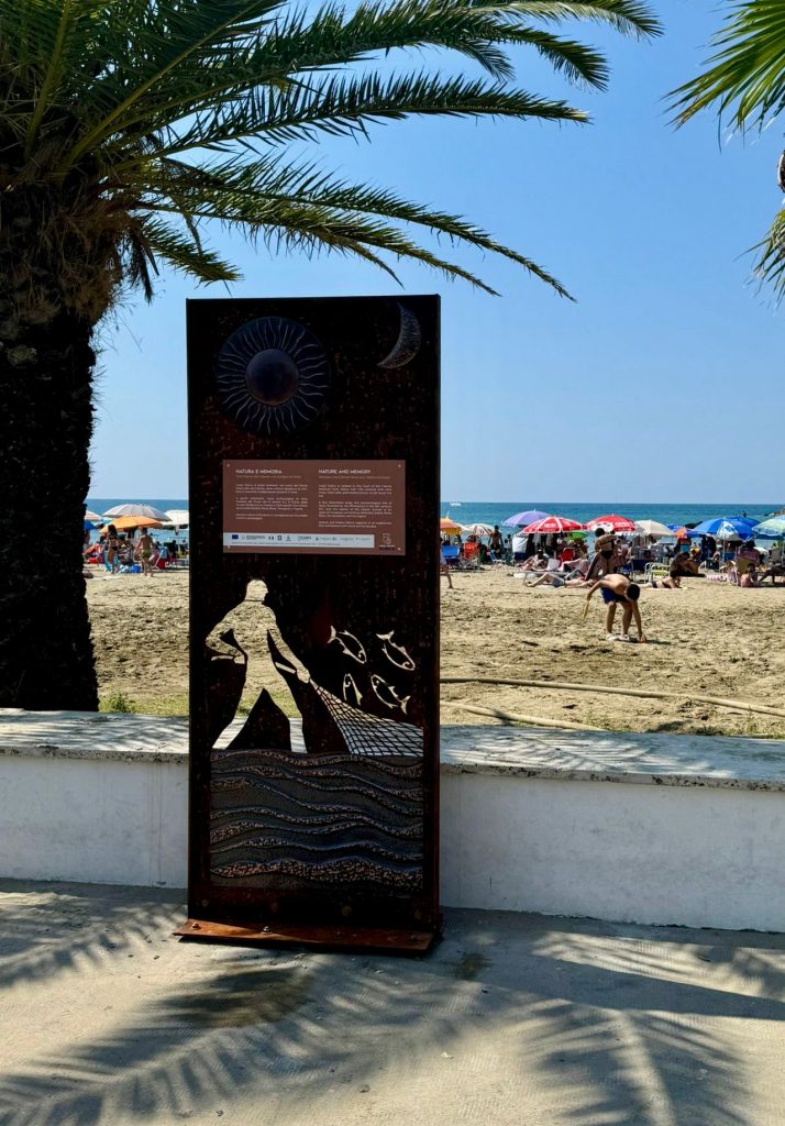 Il lungomare di Casal Velino Marina fa da cornice paesaggistica ai totem artistici installati permanentemente per ‘Onde d’arte: il mare si racconta’, iniziativa svoltasi sabato 23 agosto nell’ambito del progetto ‘Casal Velino-Saperi di mare’ con l’obiettivo di valorizzare lo spazio pubblico attraverso l’arte contemporanea, raccontando l’identità locale.
