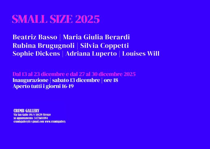 Crumb Gallery, Firenze, presenta SMALL SIZE 2025, in programma dal 13 al 23 dicembre 2025 e ancora dal 27 al…