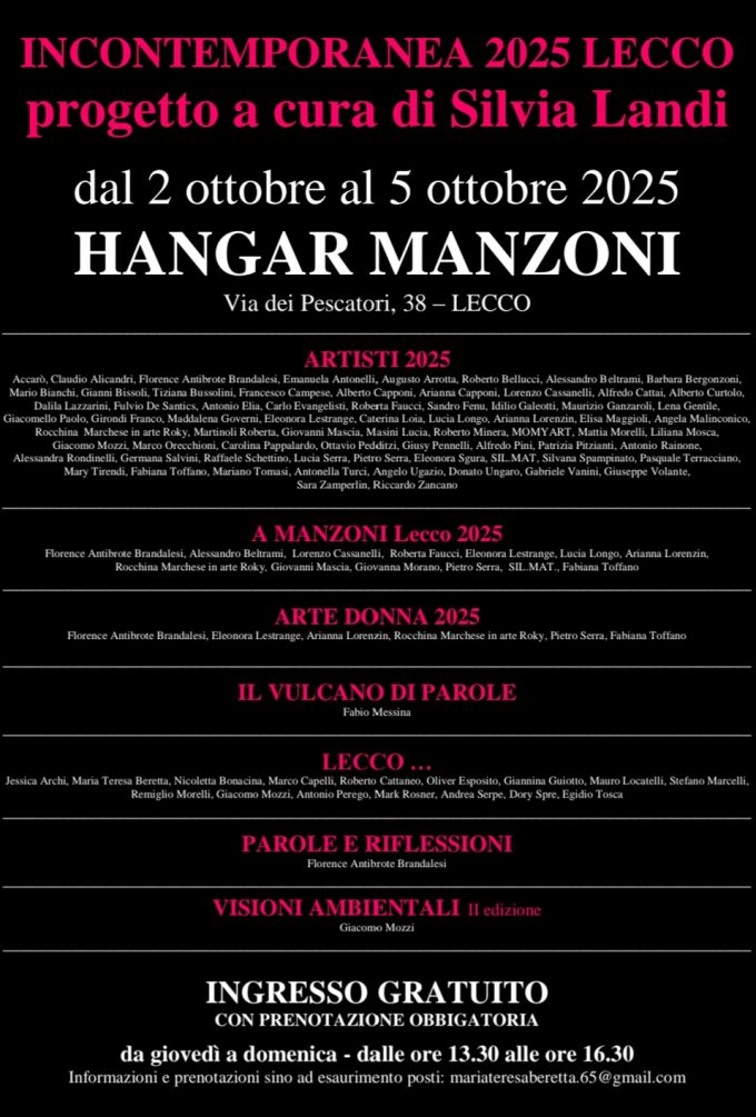 INCONTEMPORANEA 2025 Lecco è un progetto a cura di Silvia Landi, dal 2 al 5 ottobre 2025 presso Hangar Manzoni,…
