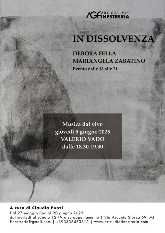 Bipersonale di Debora Fella e Mariangela Zabatino IN DISSOLVENZA giovedì 5 giugno 2025 VALERIO VADO MUSICA DAL VIVO dalle 18.30-19.30…
