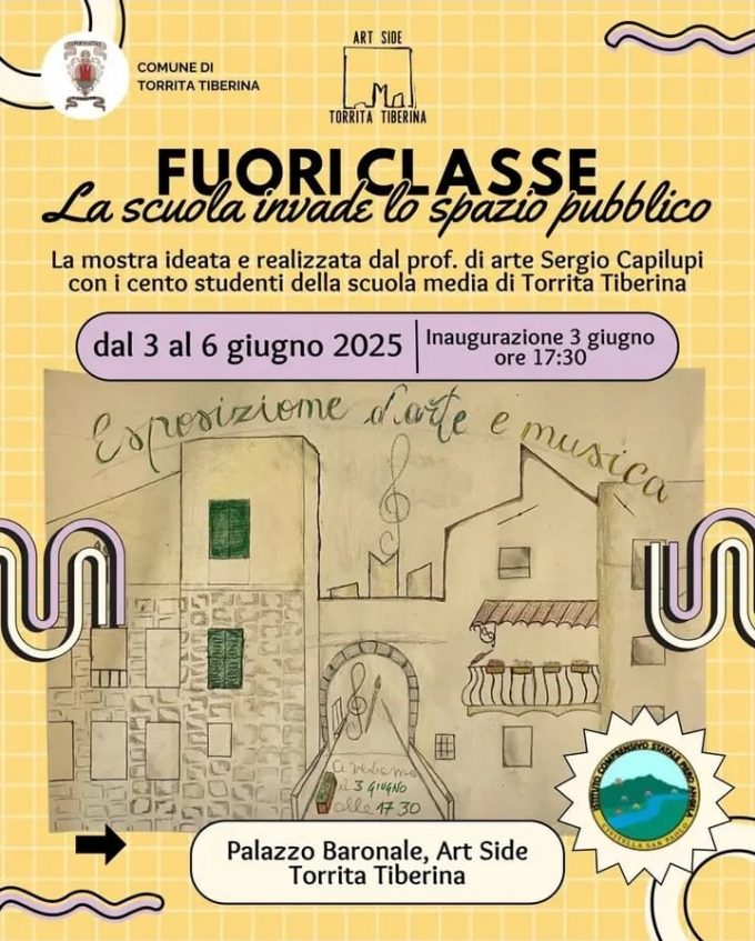 La scuola invade Lo spazio pubblico cento studenti della scuola media di Torrita Tiberina con circa 350 opere il Palazzo…