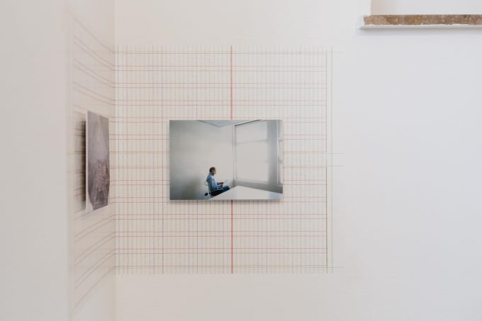 Disegnare la terra, all'altezza degli occhi Sanguigna su tela, registrazione delle altezze di sguardi di varie persone, 2x1m, 2018 -…