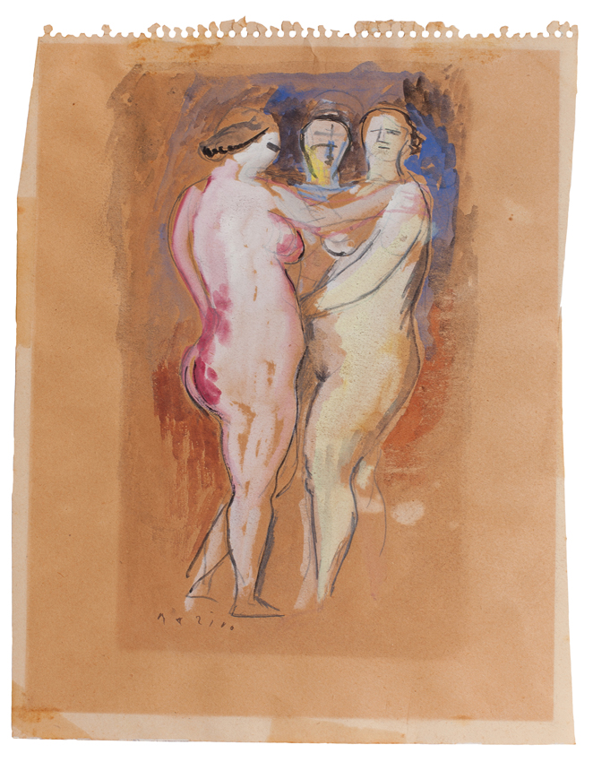 Oltre a disegni, incisioni, ceramiche e vetri realizzati dall’artista stesso, il nucleo comprende opere della sua collezione privata: due splendidi disegni su carta di Marino Marini, una cera graffita di Felice Casorati, una fragile quanto preziosa ceramica smaltata di Lucio Fontana, seguita da un grande foglio di carta ancora “impastato” di argilla su cui sono tracciati studi e bozzetti per sculture diverse. Poi ancora, un carboncino di Ennio Morlotti, diversi disegni di Mino Maccari, al confine tra umorismo vignettistico e satira, un delicatissimo ritrattino femminile di Pietro Marussig, una natura morta su carta di Giuseppe Santomaso, due litografie di Pablo Picasso, una di Jean Dubuffet, e un’altra di Virgilio Guidi, un olio di Piero Ruggeri e un lavoro di Emilio Scanavino.