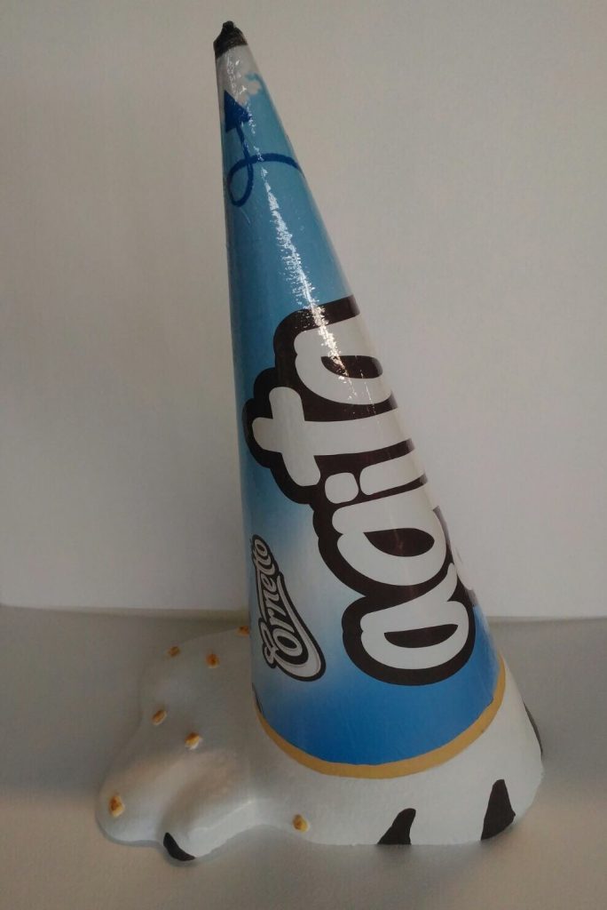 Di fatto la Pierelli opera con le armi retoriche tipiche della decontestualizzazione e del détournement, oppure con nuove proposizioni segniche che agiscono sul significante e dunque anche sul significato (si pensi al “Cornetto Agita”, in tutto simile tranne per questo refuso al corrispettivo marchio). E basta questo slittamento semantico per fare di un’opera iperrealista un’opera concettuale, per introdurre, in un contesto solo all'apparenza di leggerezza, una comicità “algida” da vera patafisica.