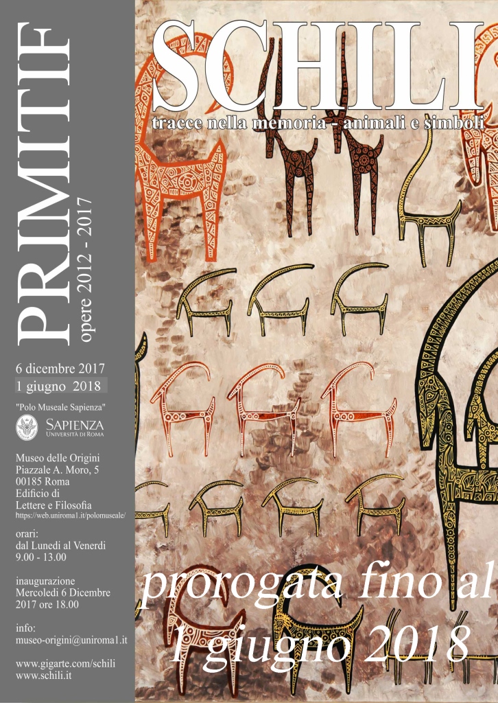 PROROGATA FINO AL 1 GIUGNO 2018 SCHILI PRIMITIF: TRACCE NELLA MEMORIA, ANIMALI E SIMBOLI opere 2012 – 2017 Mostra presso il Museo delle Origini – Polo museale Sapienza
