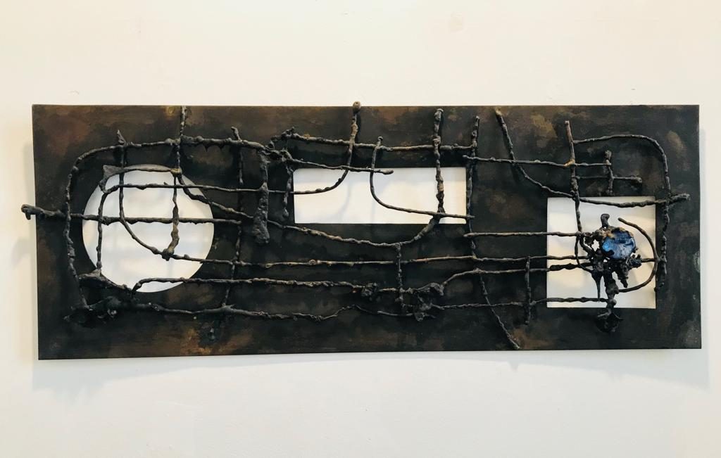 Idea (1966-67) è un lavoro storico dello scultore Edgardo Mannucci, (due Biennali di Venezia, 1956 e 1962 e mostre personali in gallerie di primordine dell'epoca: Obelisco 1957, Medusa 1958, Attico 1960) lamina di ottone, scorie e fili di rame fuso, saldati e vetro, cm 27x67 x4.