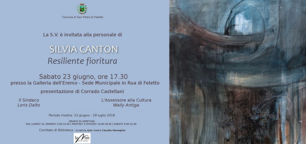 Mostra personale di pittura di Silvia Canton presso la Galleria dell'Eremo a San Pietro di Feletto, sede Municipale. Inaugurazione 23 giugno 2018, ore 17.30. Presentazione di Corrado Castellani