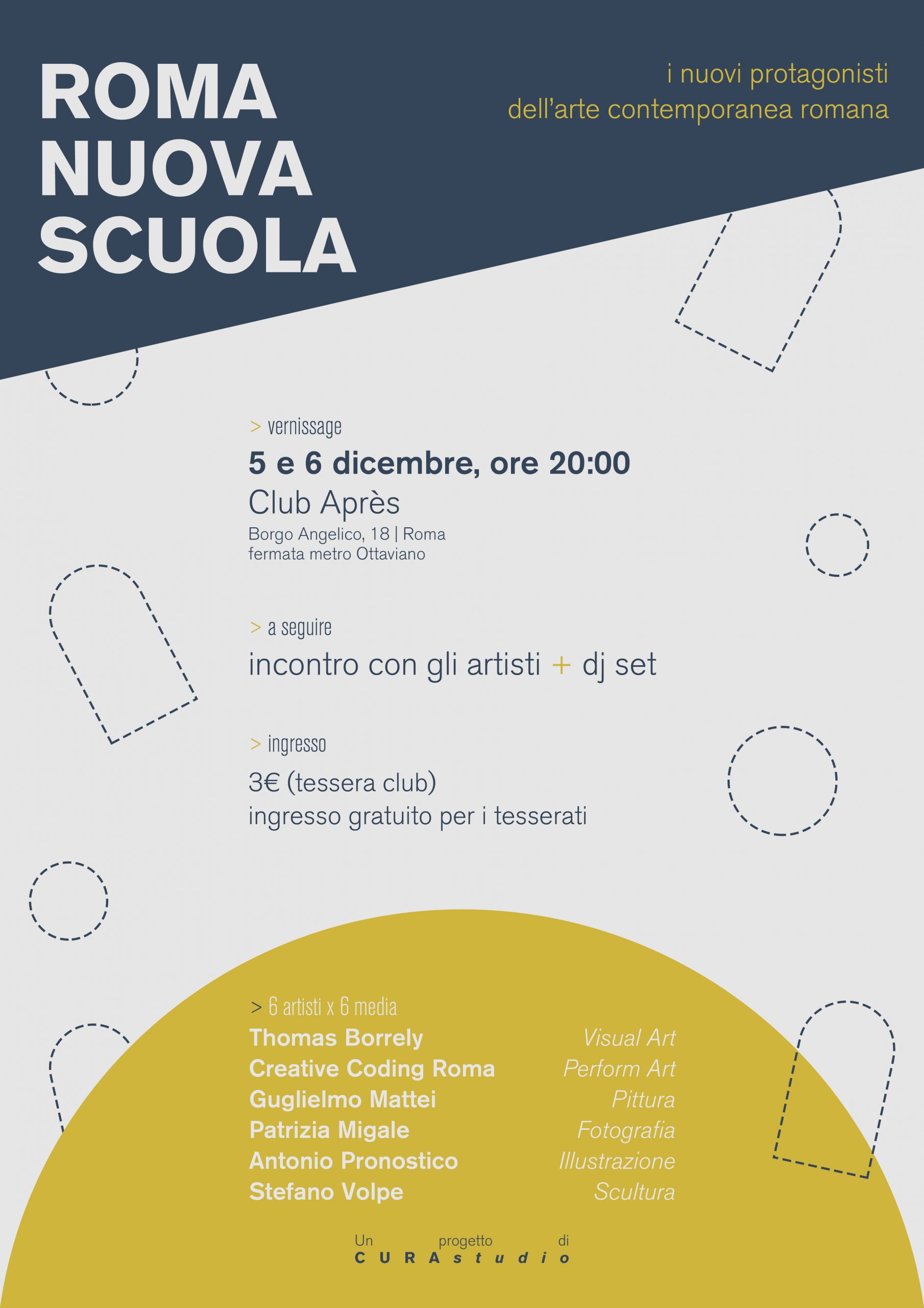 Il doppio vernissage sarà un’opportunità per visitare la mostra in anteprima ed assistere a un dibattito con i protagonisti della collettiva, volto ad approfondire i lavori realizzati per la mostra e il loro rapporto con la città. Com’è che si racconta Roma nel 2018? Alla base di Roma Nuova Scuola c’è la volontà di osservare incuriositi le mille contraddizioni della Capitale; di ribaltare i punti di vista e inciampare in nuove prospettive, celebrando l’incontro-scontro tra la storia millenaria della città e il suo quotidiano, tra il mondo dell’arte e la realtà. Roma Nuova Scuola è perciò un dialogo vivace tra scultura e pittura, illustrazione digitale, matite e chine, fotografia e Perform Art. È soprattutto un’occasione per riscoprire la città e innamorarsene ancora, attraverso le opere di sei artisti di base a Roma, nuovi protagonisti dell’arte contemporanea. La collettiva, a cura di Gabriele Naddeo e Francesco Pascale - rispettivamente giovani curatore e architetto di