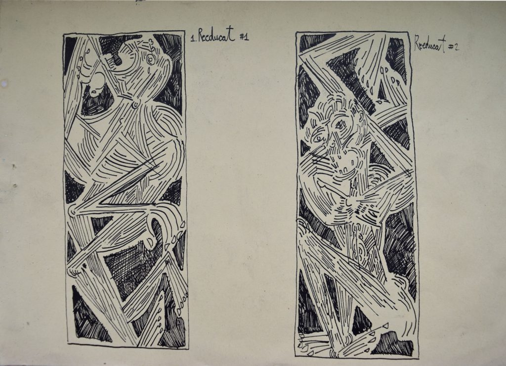 L’opera Reeducation di Mircea Ciutu evoca, con immediatezza, questi pensieri; l’artista, in una tela di dimensioni possenti, le cui paste alte concorrono a dare spessore e autenticità al sentire dei giovani smarriti e straniati che vi sono rappresentati, mostra i campi di rieducazione in cui, durante la sovietizzazione della Romani e il regime di Ceausescu, venivano rinchiusi i dissidenti e i non allineati.