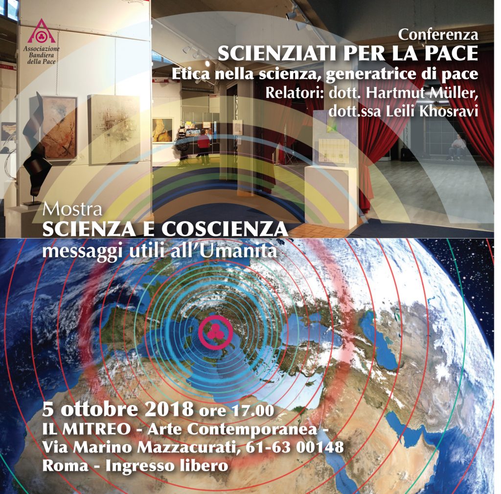 In occasione del Convegno Internazionale “SCIENZIATI PER LA PACE – Coscienza ed Etica Planetaria”, che si terrà a Città della Pieve dal 19 al 21 ottobre, l’Associazione MitreoIside e l’Associazione Bandiera della Pace di Roma, propongono nella città di Roma la Conferenza,Scienziati per la Pace, tenuta dal Dott. Hartmut Muller e la Dott.ssa Leili Kosravi, che introdurranno al pubblico i temi del Convegno, in particolare sul rapporto tra Scienza ed Etica, per una visione globale della vita sul nostro Pianeta.