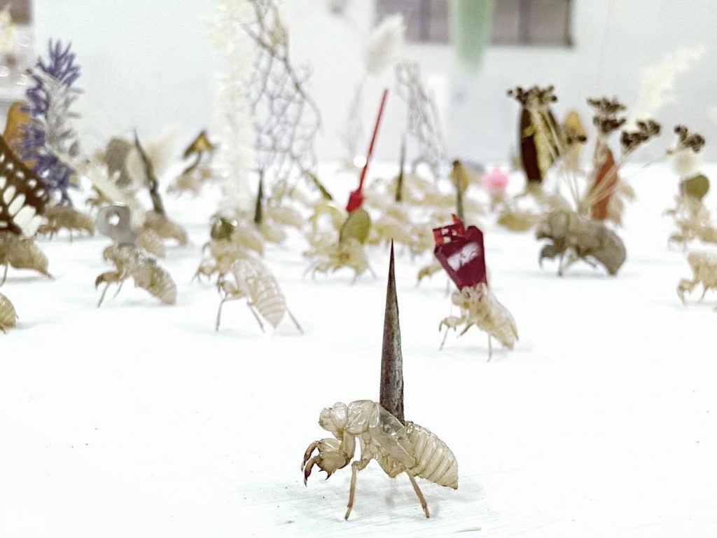 Alcuni dei lavori prendono vita da un dialogo con gli archivi Le Costantine e De Viti de Marco – Starace. Tessuti, disegni, fotografie, lettere, campionari, ricettari, registri poetici delle lavoranti del laboratorio di tessitura, racconti di una storia di autodeterminazione femminile, pedagogia montessoriana, ecologismo e pensiero steineriano che nasce agli inizi del Novecento e continua ancora oggi ad essere fonte di ispirazione. Un’immersione nei ritmi, nelle storie e nelle trame quotidiane del borgo, un insinuarsi nelle sue maglie relazionali, nei ricami, come gesto di ascolto attivo e presenza incarnata.