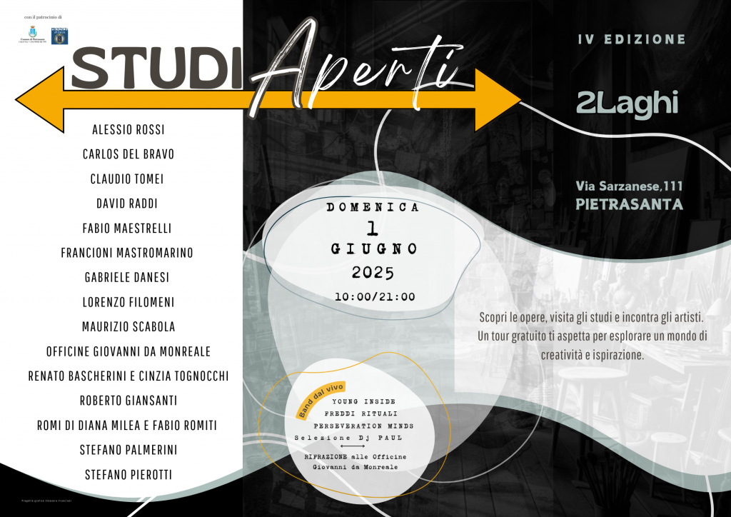 Buongiorno, vi allego il comunicato stampa per la quarta edizione di Studi Aperti 2 laghi a Pietrasanta del primo giugno 2025.
