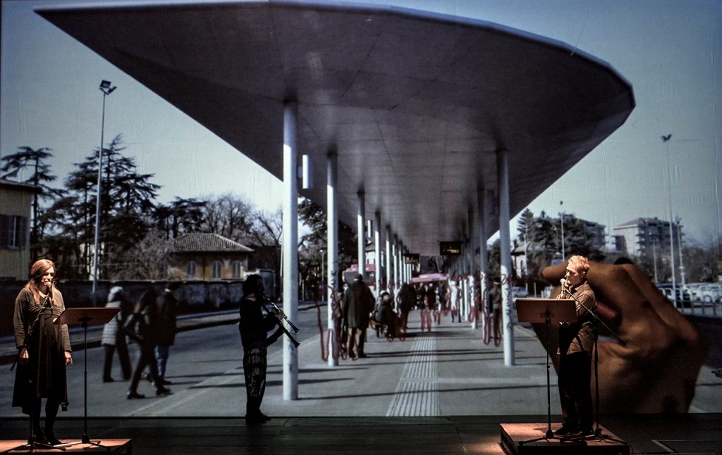 In scena gli stessi Monica Morini e Bernardino Bonzani insieme al compositore e musicista Gaetano Nenna e all’artista visivo Michele Ferri, che interagisce dal vivo con uno schermo di immagini parlanti realizzate ad hoc dal videomaker Alessandro Scillitani.